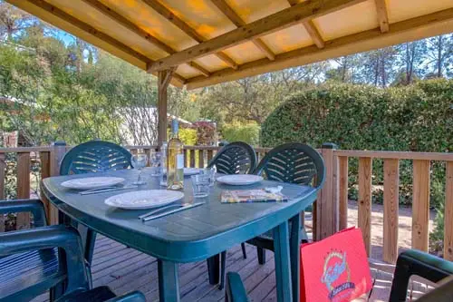 It is a mobile home with a large living room and large windows overlooking the Esterel mountains. With its covered terrace, you can be sure that your holidays will be unforgettable!