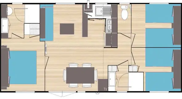 In this air-conditioned, spacious and modern mobile home, in the colours of the south of France, you will enjoy an exceptional nature holiday, in the heart of the Esterel Mountains. The perks of this mobile home include a private hot tub!