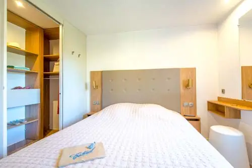 • Large master bedroom with dressing room and television • Bedroom with 2 single beds (80 x 190 cm beds) • Panoramic convertible lounge • Air conditioning • Television • Equipped kitchen • Dishwasher • Oven • Shower room • Separate WC • Covered terrace • Garden furniture • Sun loungers • Parking for one car