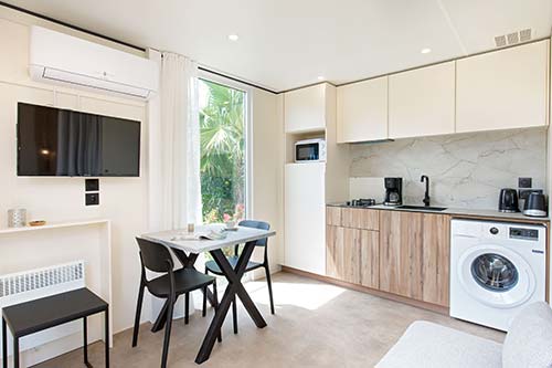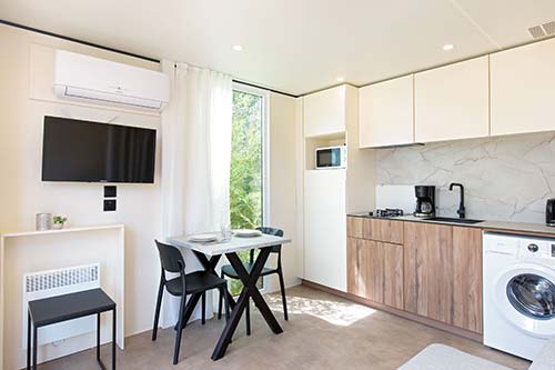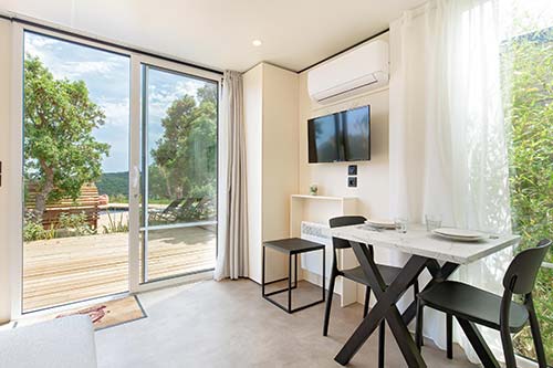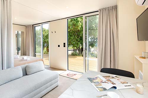 The VIP Duo is much more than just a mobile home for two — it’s a luxurious cocoon nestled in lush greenery facing the Esterel mountains.